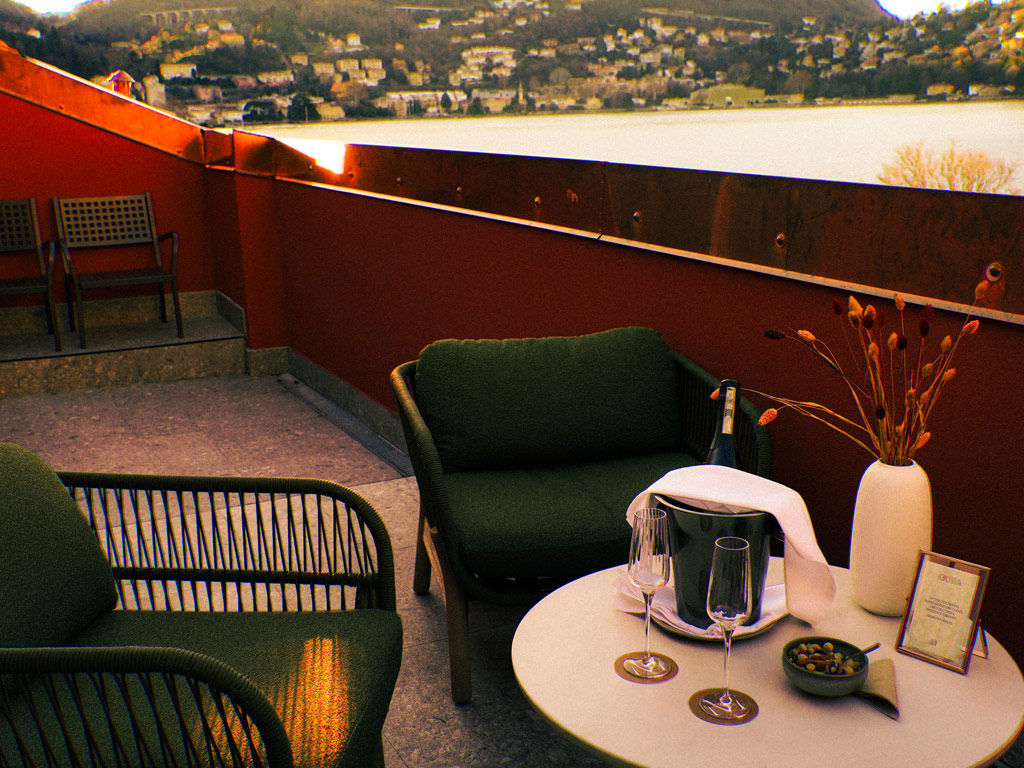 With a private rooftop terrace and a view stretching over the lake, it is a place suspended between sky and water.Spaces are fluid, elegant, essential. Designed for those in search of a truly singular stay, balanced between intimacy and vastness.